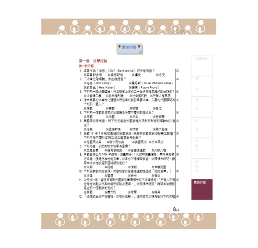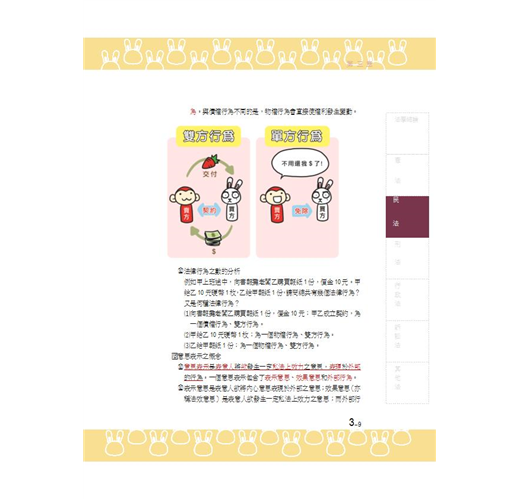 十多年的教學生涯,讓編者十分體會恩師的心情,因此編者在教學上一直努力試著讓初學法律的學生,在著手閱讀時,可以不要「害怕」這一門有趣的科目。所以在彙集十年來的教學講義、整編學生們平日最需要解 答的問題,並得到前輩的支持後,決定編寫一系列「快快樂樂學法律」的全彩圖文輔助學習書籍。