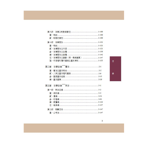 完成一本入門法律的書,要參考的資料又廣又多。編者資淺,廣從法 學先進們的大作、過去所學之筆記、教學于札及網路上參閱的資料,將此 書彙編而成,或有引註之疏失,尚請先進們見諒與指教。