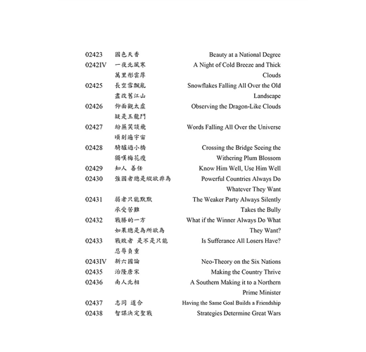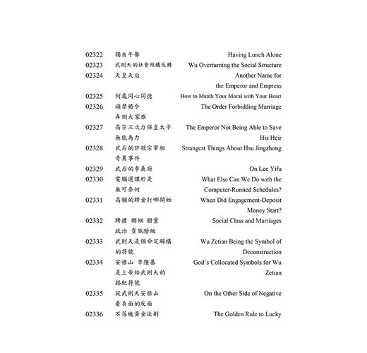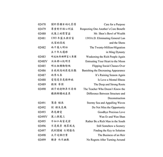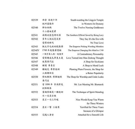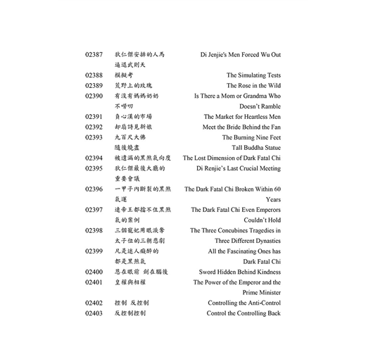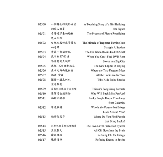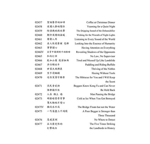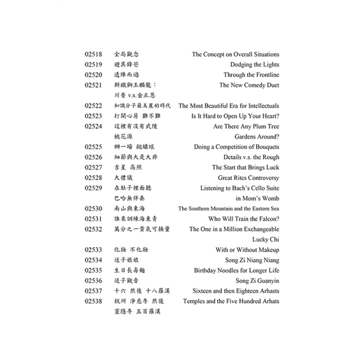Ruyi, Chongsho, Yenzai, Chenshen, Tianchewanshui Wansuidengfeng, Wansuitungtian, Shengung, Shenli