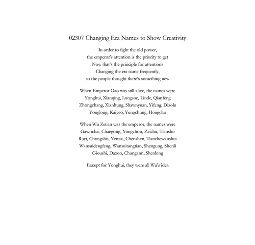 Gawnchai, Chaegong, Yongchon, Zaichu, Tiansho