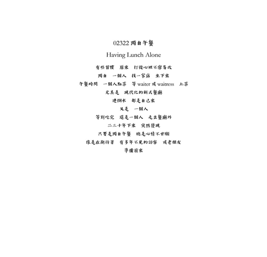 曾任宏仁女中英語讀者劇場社長,目前致力於中英短文寫作。