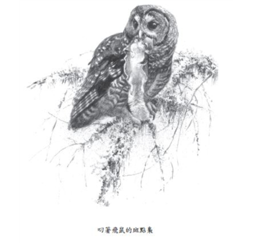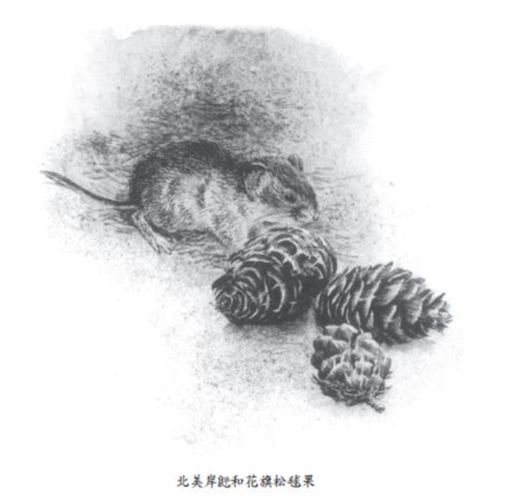 第四章 成熟——三百年來,我們這棵樹已經躋身老熟林,總在九月的和風中散播種子——是澄腹赤松鼠的最愛,四天就可以貯存過冬所需。道氏赤松鼠也每年吃掉樹上一半毬果;候鳥遷徙時路過,也會在此大快朵頤,補給蛋白質與熱量。老熟林中的枯立木被飛鼠占據,偶有巨木倒下,空間馬上被藤楓、鮭莓、和越橘等填滿,木蟻也在腐爛的樹幹上,建立了龐大的聚落。