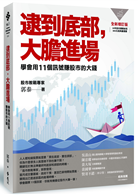 股票投資想要獲利,不二法則就是低買高賣,但大盤的最低點總是事後才看得出來,而每逢探底卻又讓投資人心驚膽怕。到底如何判斷已達底部區的最佳進場時機?儘管逮到底部區,如何知道買的標的是主流股?抱牢持股後,又該在何時賣股?作者郭泰擁有30年股票投資經驗,他發現只要出現下列11個訊號,就是底部區現身的時候,這時只管大膽分批買進。判斷底部區的11個關鍵訊號是: