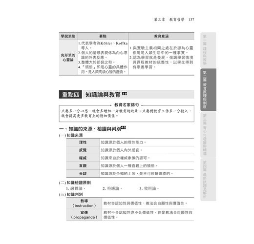千華為有志報考國小教師檢定的考生,設計出版了這本通關寶典。內容針對其考試科目「國民小學課程與教學」、「教育原理與制度」及「兒童發展與輔導」編制,且每科目都包含重點整理及模擬試題,並配合未來命題方向精編題組型擬真情境題,幫助讀掌握考題趨勢。除了將繁瑣的課文內容化繁為簡,讓讀者一目瞭然外,更精心模擬了仿真試題,培養應考實力。本書第4部分,近年試題與解析,收錄了104~106之近三年試題,並做命題分析,讓讀者更能掌握命題方向。