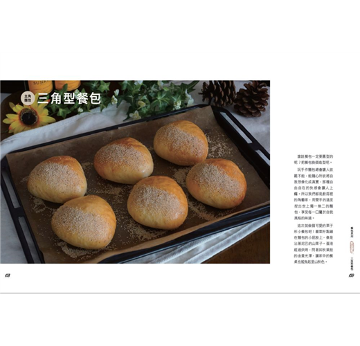 以簡單的餐包類為主,也就是當主食用的麵包,並且繞著它來變化吃法。如貝果、餐包、法式小圓麵包、德式麵包、吐司麵包、烤餅、口袋麵包等等,用最方便的器具、最簡單的步驟,在家短時間就可以完成。另外,它們所搭配的開胃菜和湯品飲品,也有完整的組合與口味建議。