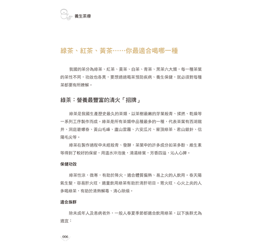 不同的體質適合喝不同的茶,書中詳細說分明。