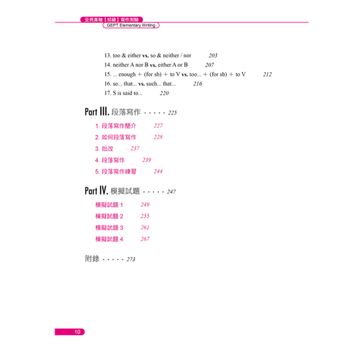 6. 本書之學習進度表建議每日的研習量,還有四組擬真模擬試題,練習份量紮實,寫作要過就靠這一本!