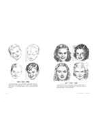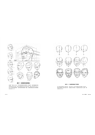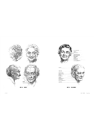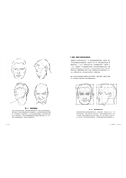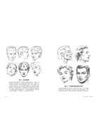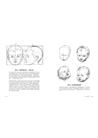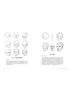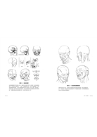 10頁 和11頁 的圖說明從各式頭顱發展出各種類型的可能性。在學會設定球體與塊面之後,靠著在臉部中線上的分段,幾乎便能隨心所欲發揮,將所有部件放到結構中。你可以任意放上可大可小的下顎、耳朵、嘴巴、鼻子,和眼睛。顴骨可高可低,上唇或長或短,兩頰豐滿或下垂。將這些進行不同的組合,幾乎可以創造出無限的人物變化。親自實驗會有極大的樂趣。