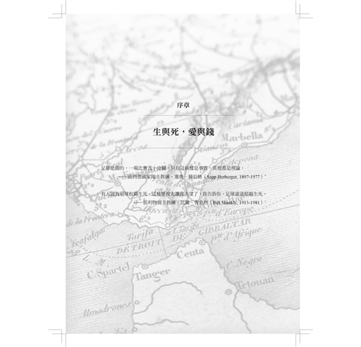 所以,該和這些影響力達成怎樣的交易?界線如何監督?誰會設法越界?不只是官員和投資人、犬儒的足壇和投機的政客,每一個踢球、看球、追隨足球的人都必須對此達成共識。我們希望看到最頂尖的職業球員踢最高水準的比賽,但又受不了球員的薪資可能會削減他們的熱忱和渴望。我們想看風格和創意,但也能接受半場只踢進一球。我們愛把球會老闆想成陰險的壞蛋,但也希望他們遵守勞動安全衛生法。我們痛恨媒體大亨想收購比賽轉播權,但卻還是訂閱了收視頻道。金錢和權力,資本和國家—不願與之共存,少了又活不下去。足球,這個全世界都在玩的遊戲,為當今之世的矛盾提供了一則隱喻,凡是無意摒棄現代生活,而把改革現代生活當成出發點的道德架構或政治方案,核心都存在著這樣的矛盾。