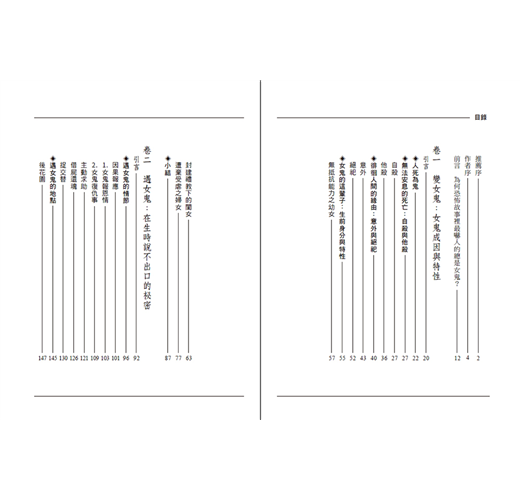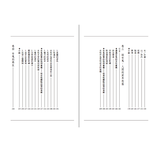 書中舉列處隧道、校園、水邊、山中等處的女鬼傳說,剖析民間之於女鬼的意象。