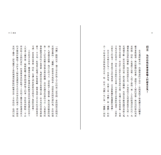 在充滿神祕未知,浩瀚無盡的宇宙中,存在著超出人類智慧所能理解、科學得以驗證的種種現象,千絲萬縷交互糾纏著,蘊含著無窮盡、無法解釋的意義。人,有如滄海一粟,在這遼闊的天際,相對地渺小了。人隨著生活的際遇坎坷浮沈,於人生旅途上,充滿著各種不可預知的變數。特別是面對生死大事,有生必有死,有死必有生,生死循環不斷,按著一種自然規律進行,誰也無法拒抗。死後世界雖說幽明異路不容探索,但由於人對於生命結束後要往那裡去的好奇與想像,有著天馬行空的想法,因此人在有限的生命,引來對生命無限的遐思,以致於只要有人的地方,就有無數關於超驗感應的事蹟與敘事,以及說不完的鬼故事。