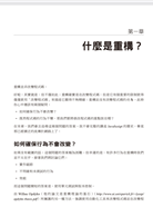 「重構JavaScipt為改進你的JavaScript程式碼指出了清晰的方向。這本書討論重構的工具和技巧,以及如何在不改變程式碼行為的前提下修改程式碼。全書中皆穿插附導引的範例,帶領讀者悠遊於重構程式碼所會涉入的複雜性之中。」