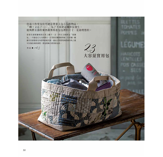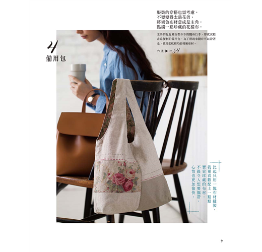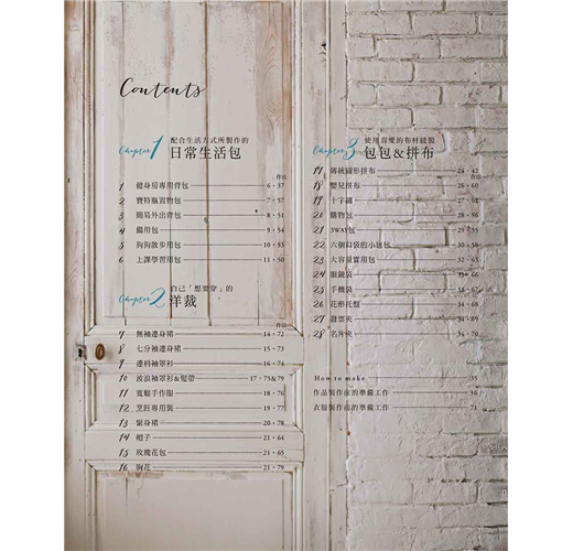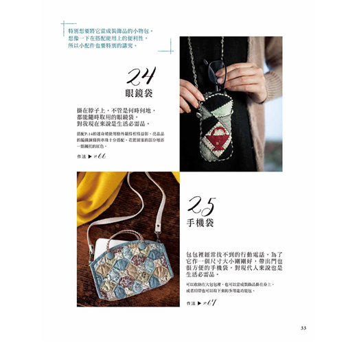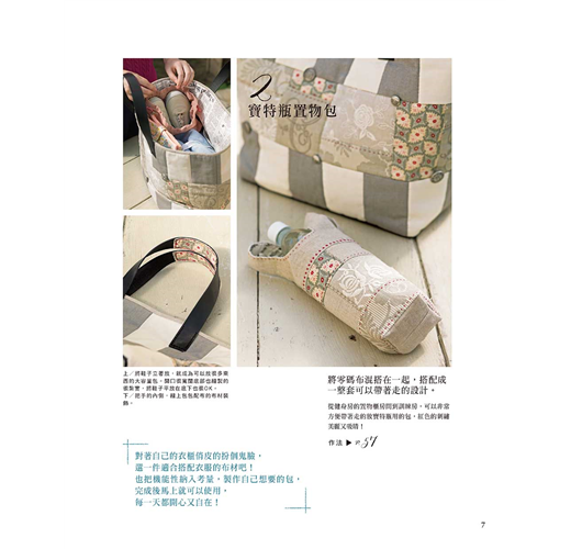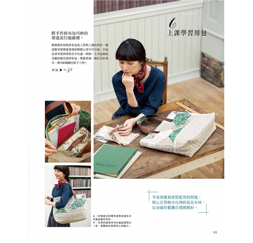 本書作品附有詳細作法教學及原寸紙型,並貼心收錄由老師親自示範的基本拼布圖形拼接、拼布包製作單元,讓初學者也能跟著職人一起入門,拿起針線製作拼布與包包,享受靜下心來放鬆自己的愉悅時光。