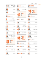 開頭先將日語音讀、訓讀作簡單扼要的說明,使讀者的觀念清晰,之後針對每個漢字清楚地分別列出音讀和訓讀的唸法,並列舉出常用的詞語,使讀者在學習上對音讀、訓讀有舉一反三之效。