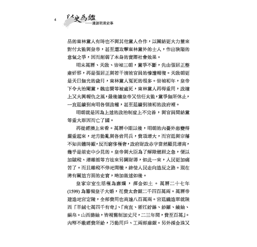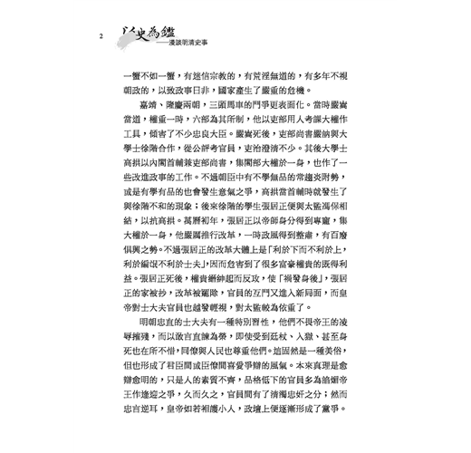 明清帝國已逝百餘年,但類似的歷史場景仍不斷重現。作者透過犀利的筆鋒,讓歷史不只是故事,而是發人深省的人生教材。