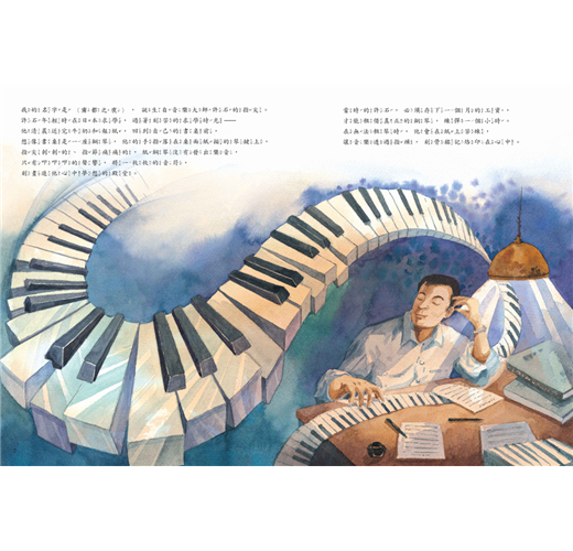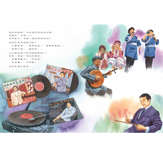水彩渲染的浪漫手法呈現當時社會與歌曲氛圍,帶領讀者進入許石的音樂創作世界。
