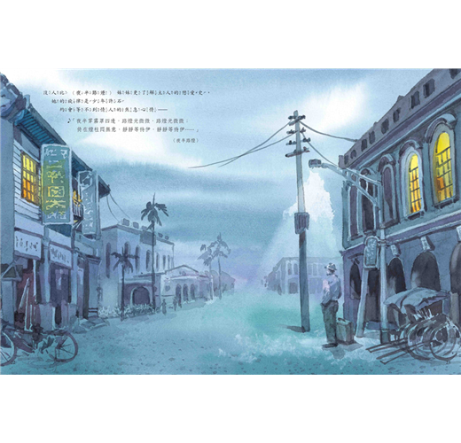 歌曲很奇妙,有撫慰人心的功效,或許是旋律和歌詞觸動了我們的心弦,那些平常說不出口的話,和不敢做的夢,都藉由歌曲完全的呈現出來了。作者林哲璋運用歌曲<南都之夜>為第一人稱,講述許石的生平故事,讓抽象的音樂多了點趣味性,也讓讀者更容易理解。而繪者蔡達源用水染渲染的方式呈現每首歌曲的氛圍,不管是悲憤的、等待的、幸福的,或是惆悵的心情,都在色彩濃淡之中,引你重回到那個年代、那個心情。