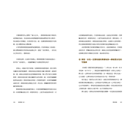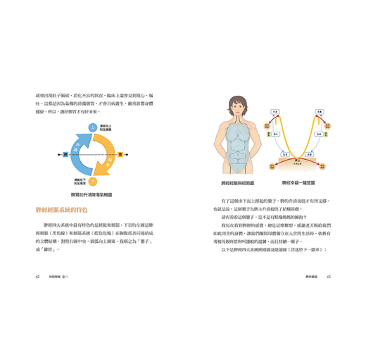 ●全新繪製的人體經絡圖,豐富的圖表搭配文字,讓讀者一目了然脾經所形成的特殊生理結構和經絡系統。