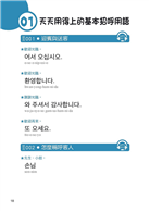 本書專門為第一線服務人員量身打造,針對遇到韓國客人的各種場景模擬情境對話,列舉實用會話短句。全書分成十一個章節,包括基本招呼用語、百貨公司用語、餐飲服務業用語、飯店客房用語、計程車用語、美髮沙龍用語、美體按摩用語、攝影寫真用語、導遊韓語、聊天韓語、機場服務用語等。其中導遊韓語篇章裡大量介紹台灣本地美食、宮廟、文化景點等,不但告訴你教韓國人擲茭求籤拜拜該怎麼說,還教你怎麼用韓文向他們介紹故宮的翠玉白菜、東坡肉形石跟毛公鼎等文物。那些看似簡單,真正要使用時卻不知道該怎麼說的服務業韓語,這本書裡全部都有!而且學會這些,不僅在台灣接待韓國客人有用,如果你有機會到韓國當地從事接待工作,書中的韓語應對進退方式,也都能拿來使用。