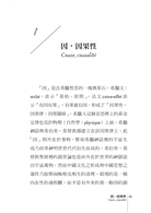 「因」是古希臘哲思的一塊奠基石,希臘文:arché,表示「基始、原則」。法文cause-effet表示「有因有果」,有果就有因,形成了「因果性、因果律、因果關係」。希臘人這個在思辨上的黄金定律也見於物理(自然學:physique)上面。希臘神話與希伯來-基督教都建立在該因果律上,此「因」則外在於事物,譬如希臘神話裡的宇宙生成乃由眾神明世世代代衍生而成的,希伯來-基督教聖經裡的創世論也是由外在於世界的神創造出宇宙萬物。然而中國文化之形成與中國思想之運作乃按照兩極相克相生的道理,展現的是...