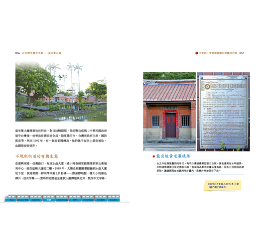 台北從清末建城至今,不過一百多年的時光。如今有捷運在城市的地下南來北往,搭乘捷運也可以想像是進入一台時光機。在進出之間,可以想像從阿公、阿嬤年輕的歲月來觀察台北,也可以從爸媽念書、工作的年代來認識台北。台北擁有眾多面貌,而這些容顏目前還可以觀察一二,透過本書介紹,希望可以讓更多人瞭解與認識這些文化資產。
