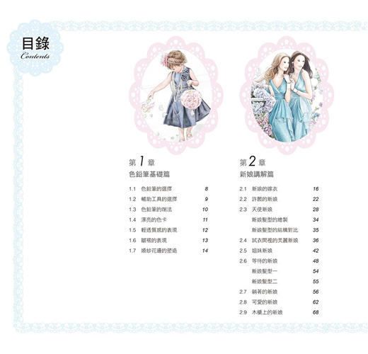本書為色鉛筆繪製婚紗、人物技法說明大全,全書總共四章,從色彩筆彩繪的基礎知識開始講解、各種情境之下新娘繪製說明,新娘與新娘場景繪製講解,和伴娘、花童的繪製說明。技法由淺至深,說明淺顯易懂,實例眾多。方便色鉛筆繪畫入門者學習。