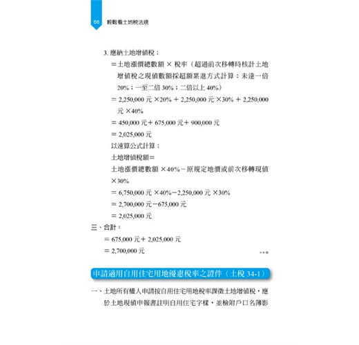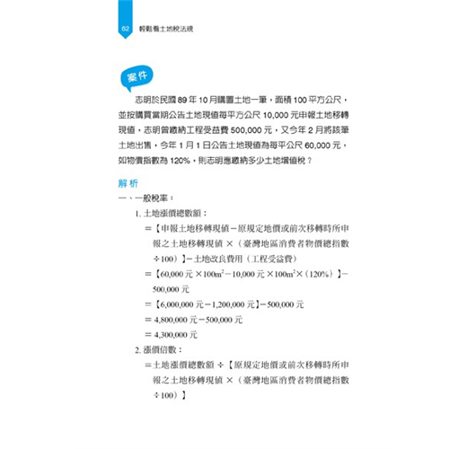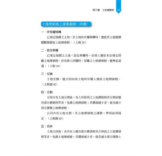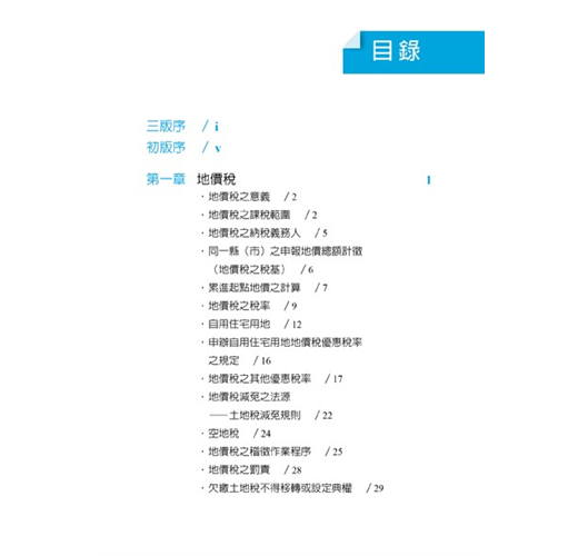 此次再版乃配合土地稅相關法規的變動而加以增修,以因應讀者之需要;本書版型亦同時全面換新以期讓讀者閱讀更為流暢。本書於作者修正後,承事務所同仁協助校稿,並指出若干修正意見,十分感謝。本書如仍有錯誤疏漏之處,希各方賢達不吝指正。