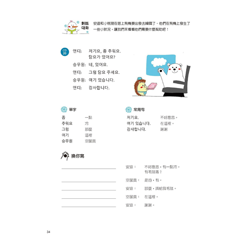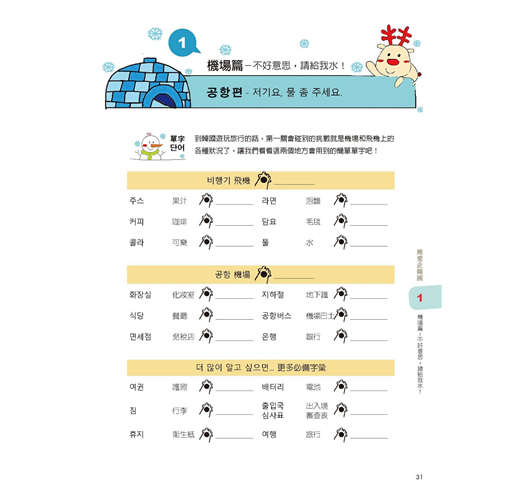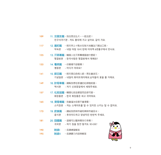 每個單元後面都有仿考試的練習題,以及與該課主題相關的韓國當地照片讓讀者身歷其境。