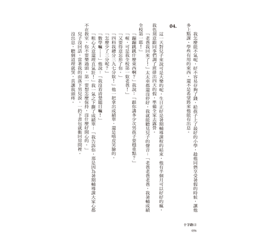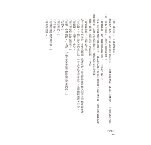 這也是我誠摯向各位讀者推薦的理由――我們可以在全書中透過每個章節主角的經歷與心境,從情感互動到情慾流動,不同的年齡層、不同人生階段的人,會有什麼樣的態度與選擇,去喚醒社會意識的存在;我們或許都在自個的十字路口上,或許也都正面臨著選擇,或許我們都能在來的及的時候――做出無悔的選擇。