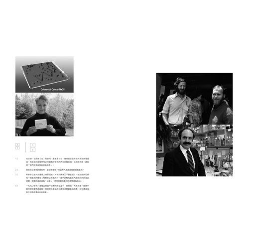 那天夜裡,我寫完記錄,回到實驗室,那裡已經忙得像蜂窩一樣。博士後的研究生和研究所學生在顯微鏡和離心機邊打轉,偶爾聽到一些醫學辭彙,但實驗室所用的方言和醫學方言不同,就像在兩個相鄰的國家旅行一樣──兩者雖風格相似,但用的卻是不同的語言:「但在白血病細胞上使用PCR(聚合酶連鎖反應)應該可以發現這條帶狀。」「你是在什麼條件下跑這個膠體?」「洋菜膠,百分之四。」「在這個離心步驟中, RNA有沒有分解?」我由保溫箱裡取出一盤細胞,這個盤中共有三百八十四個小孔,每一個的大小都無法容納兩粒米。我已經在每一個孔裡放進了兩百個人類白血病細胞,然後由一堆未經測試的化學物中,加入一種。同樣的,我也準備了它的「雙生」盤──有兩個正常的人類造血幹細胞,在每一個孔內加入同樣的化學物。