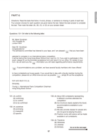 ③長篇文章填空類型:Part 6需要考生完成包含空格的不完整文章。在全新多益測驗中,增加了4道試題,總題數現為16題。亦即,每篇文章下各有4道試題,而本部分共有4篇文章。本部分中,出現找出適合的句子,填入文章空格的題型,考生需要從選項中,挑選出符合文章脈絡,且適合填入空格的句子。因此,迅速且正確掌握文章脈絡的能力,是非常重要的。