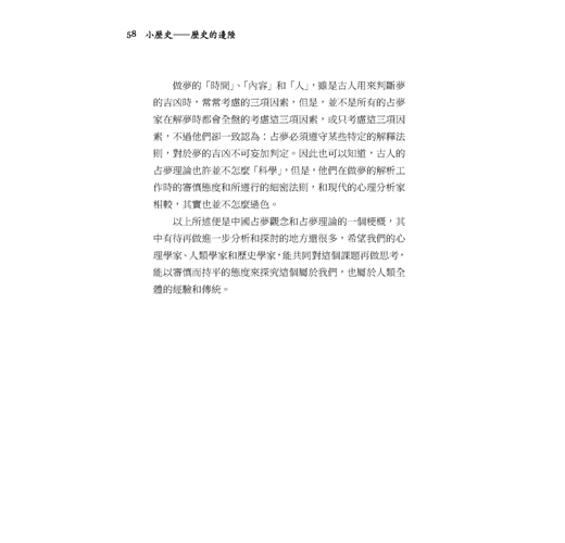 這本書沒有帝王將相的運籌帷幄,權謀計算;沒有英雄偉人的豐功偉績,功成名就,卻是將歷史研究的眼光投注在尋常百姓的日常生活、生老病死、婚喪喜慶、喜怒哀樂,走入芸芸眾生的世界,體會底層社會的主體和生命的核心,以小人物的生活、命運,寫就了「小歷史」。