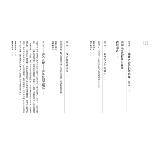 直到上了大學,我從周婉窈教授發表的文章及研究論文,重新認識了「臺籍日本兵」,這群人的戰爭經驗和我以往所認知的歷史完全相違,引發我欲一窺其神秘面貌的好奇心。我翻閱了有關臺灣戰爭史研究的書刊,認識到戰時被動員的臺灣人,不僅有派往中國或南洋的軍夫,另有一群人在臺灣實施徵兵制度前,即以「特別志願兵」的身分,率先成為正式的陸、海軍。尤其是以被殖民者的身分,加入一貫保有菁英主義色彩的日本海軍的這一批人,讓我特別感興趣。