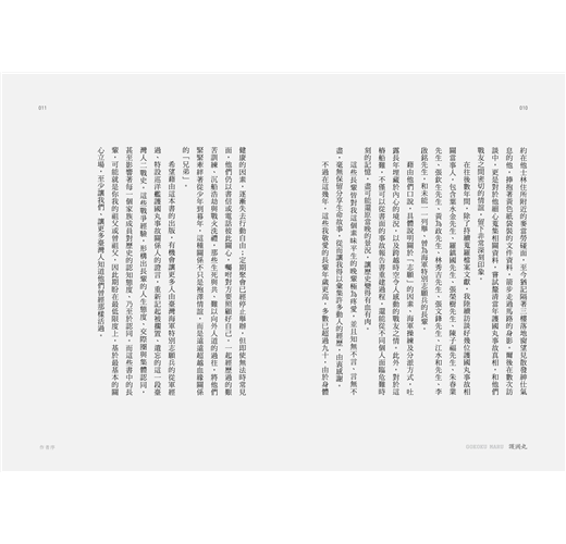 這些長輩皆對我這個素昧平生的晚輩極為疼愛,並且知無不言、言無不盡,毫無保留分享生命故事,從而讓我得以彙集許多動人的經歷,由衷感謝。