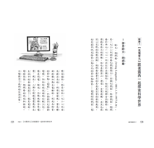 3. 【充電單元】 邀請科普自然作家張東君導讀本書,及資深國文教師精心設計「閱讀想一想、找找看」以及由自然科學教師設計的「實驗室物品名稱小測驗」!給讀者們參考使用。