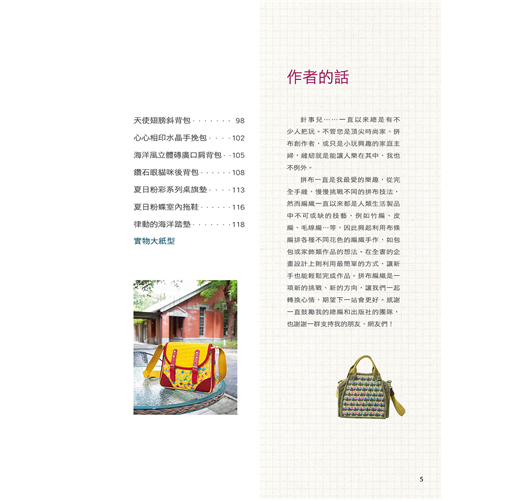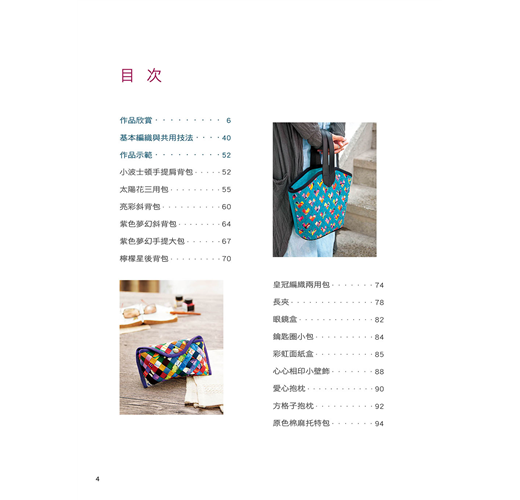 為了讓讀者更易親近拼布編織,本書特以布編織條編織出各式各樣的圖案,並運用在包包、布小物,以及生活傢飾等20餘件作品上,更從基本的編織條製作、編織方法以及袋物的基本製作技法,到每件作品的教學,均以照片步驟詳細說明,並附有原寸紙型,是一本學習袋物和拼布編織不可多得的工具書!