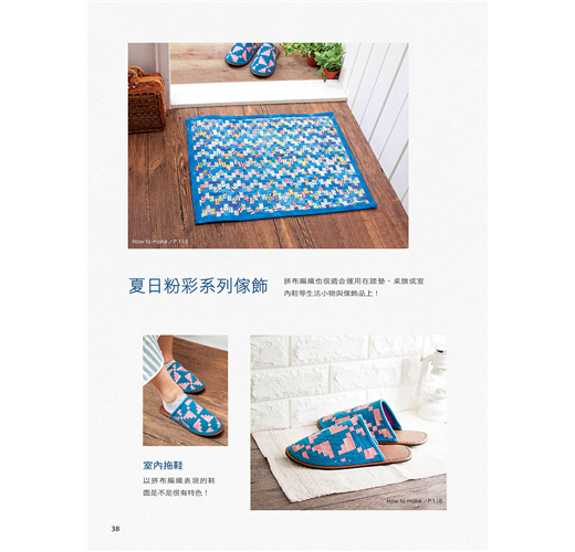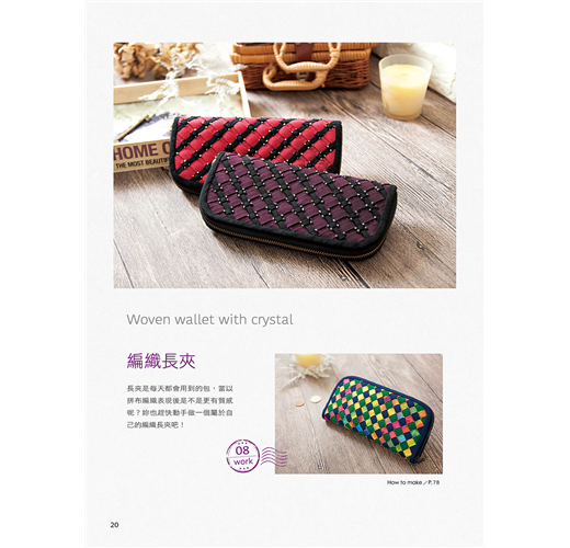 編織是一項傳承已久的手工藝,從竹編、線編到皮編、金屬編織等等,都各自發展出一片天地!在拼布中則是將布做成編織條來編織,透過顏色的變化與編織條編入的角度和編織層數呈現出不同的顏色變化,因此被運用在各種布藝品上,如壁飾、袋物、小物,以及生活傢飾品上,是一種多變有趣的布手作。
