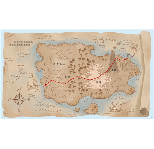 4.尋寶的主題是孩子喜歡的議題之一。在閱讀的當下,孩子彷彿變身小男孩一起乘風破浪、穿越森林,尋找謎樣的寶藏。