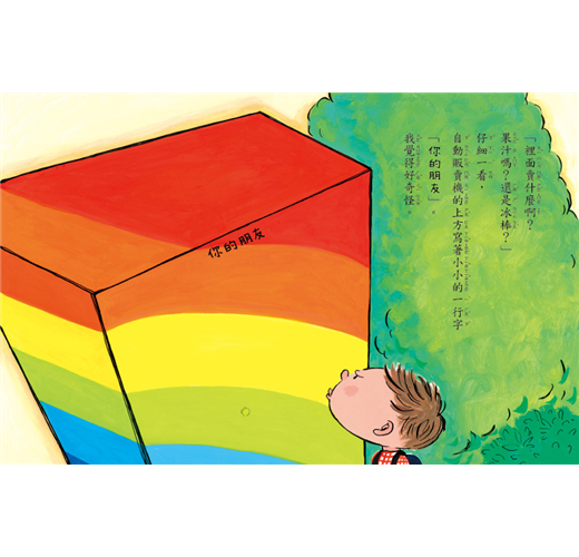 本書描述小男孩和一臺具神奇魔法的販賣機之間的溫馨友情故事,傳達孩子最終還是要成長並學習獨立,培養面對世界的勇氣,以幽默風趣的文字搭配可愛逗趣的插圖,讓孩子在閱讀中體會成長的真正意義。