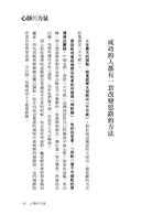 每個人最初的改變都是透過思考分析而由內心開始,拿破崙‧希爾成功學的核心思想也是如此。他告訴我們,想要達到什麼目標,只要先讓心靜下來,就可以找到方法。因為靜心是養成好習慣的開始,靜心是專注的前提條件,靜心是反省自己的頓悟,靜心是改變自己的萌芽,靜心也是成功的緣起。