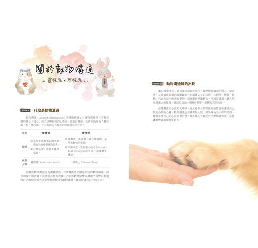 書中從動物的肢體語言、心靈感應等不同方面解析動物心,並運用練習題讓入門新手可以初步體驗,帶領大家喚醒傳心的能力,當練習後,能與動物連結,就有可能接收到動物傳遞的感覺、畫面等,依照溝通師覺醒的能力而定,這時,只要相信、連結,就能在溝通後拉近你與動物的距離!
