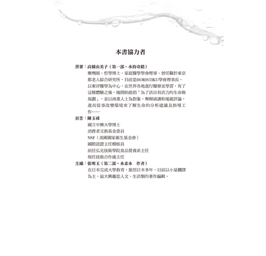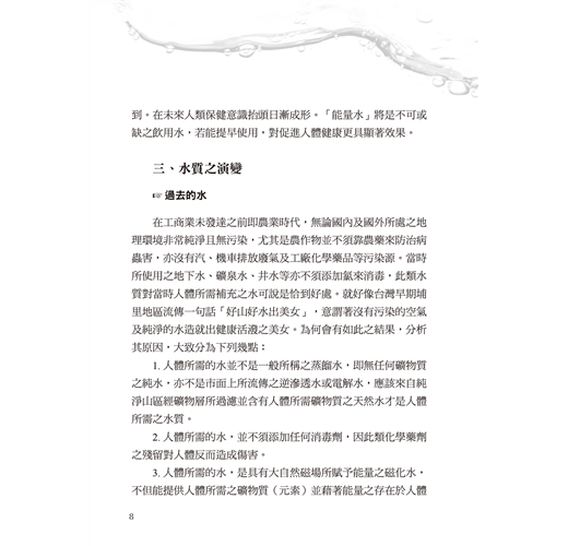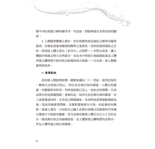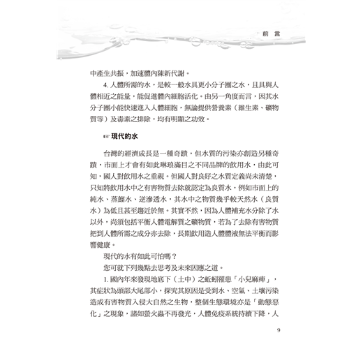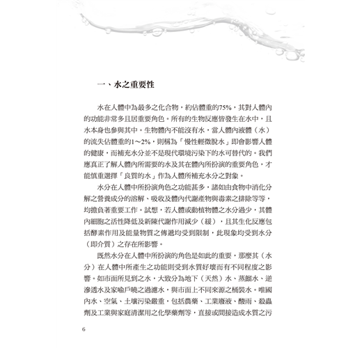 如此重要的水,其水質之優劣對人體之影響更不在話下,值得我們去重視。