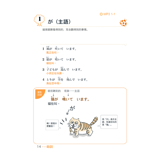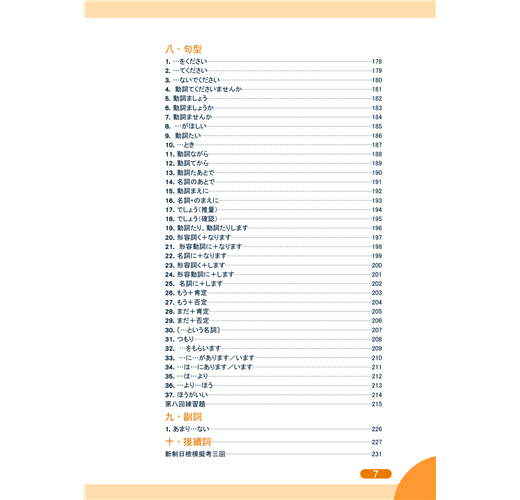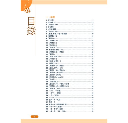 6. 聽力王─多效聽學文法:書中附贈光碟,收錄所有的文法項目跟例句,幫助您熟悉日語語調及正常速度。建議大家充分利用生活中一切零碎的時間,反覆多聽,在密集的刺激下,把文法、單字、生活例句聽熟,同時為聽力打下了堅實的基礎。
