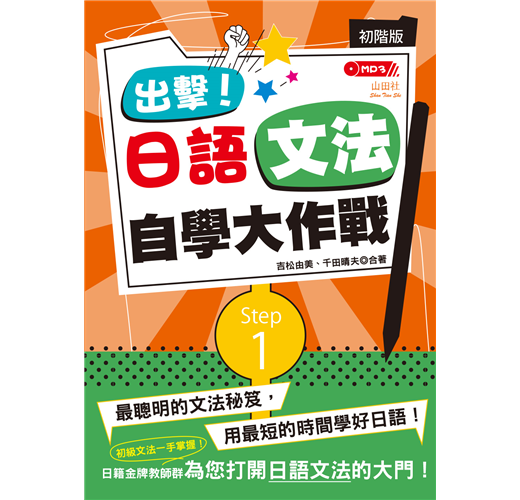 史上最強的初階文法集《出擊!日語文法自學大作戰 初階版》,是由多位長年在日本、持續追蹤新日檢的日籍金牌教師執筆編寫而成的,現在就讓日語名師們為您打開日語文法的大門吧!