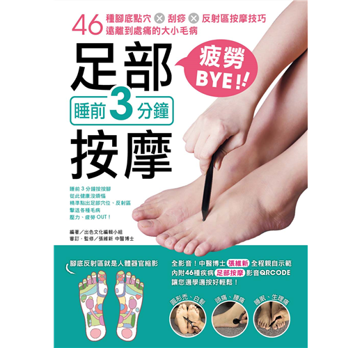 既然我們無法改變環境和生活型態,為了讓自己活得健康又快樂,只有在每天下班後、睡覺前,不到五個小時的時間內,快速地消除累積在體內的疲勞,才能迎接全新的一天、不同的挑戰。本書內集結了46種現代人常見的通病,透過每天睡前3分鐘的時間,藉由刮痧點穴筆,運用不同的刮、點、壓、按等方式,並施作在相對應的足底、足背、足內外側的穴位及反射區,讓身體的不舒服解除。