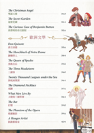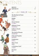 英國文學裡精選莎士比亞的《威尼斯商人》、珍‧奧斯汀的《傲慢與偏見》、狄更斯的《孤雛淚》、丹尼爾‧笛福的《魯賓遜漂流記》及路易斯‧卡羅《愛麗斯夢遊仙境》等二十五篇作品;美國文學包含馬克‧吐溫《湯姆歷險記》、傑克‧倫敦的《野性的呼喚》、愛倫坡的《黑貓》、史考特‧費茲傑羅的《班傑明的奇幻旅程》等十五篇故事;歐洲文學裡則有如雨果的《鐘樓怪人》、大仲馬的《三劍客》及卡夫卡的《飢餓藝術家》等十篇小說,題材涵蓋雋永的愛情故事、刺激的冒險經歷、驚悚的推理小說及奇幻的童話等,希望藉由不同風格的作品拓展讀者的閱讀視野。