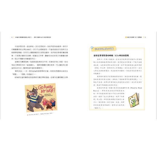 我的孩子現在已經上研究所了。我仍記得在他小時候,自己也曾運用這些原則,引領他進入英文園地。彩杏提到的一些童書,如《The Very Hungry Caterpillar》等知名作品,他也曾看過。當時與孩子共讀的樂趣,至今仍歷歷在目。他令我印象深刻的英語能力成長,更印證了我學過的語言學習理論與觀念。想必彩杏也充分享受到親子共讀的喜樂,與孩子英語能力成長的喜悅。