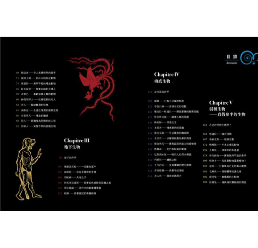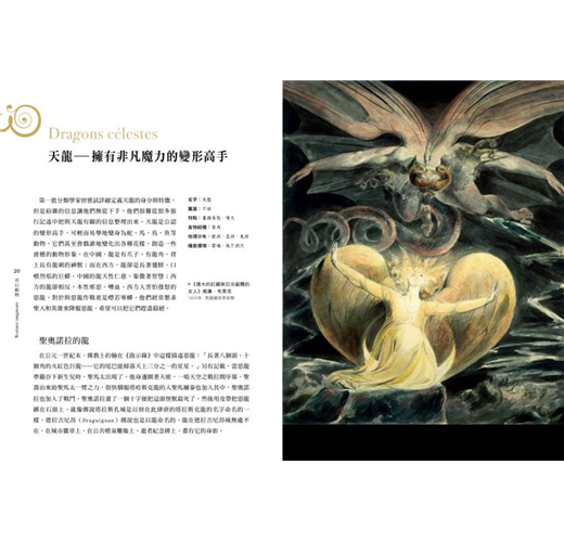 ◎將世界上奇幻生物分為5大類:飛行、陸生、地下、海洋和混種生物,依特點、地理分布、棲息環境、獵食習慣等勾勒具體形象。