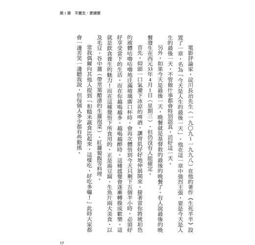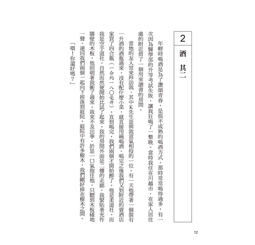 就這樣,我與許久不見的堀先生再次見面了。採訪結束後,他問我校正稿出來的時候要不要給我看一下,但我覺得沒那個必要。曾經從一旁窺見死後世界的人,不可能會寫出錯誤的文字,於是我拒絕了他。週刊出來時我收到了一份,果然沒錯,堀先生整理得很好。「每天都在斤斤計較著腰圍,晚上的小酌本來可以喝個兩合酒(譯註:一合約180毫升),卻因為在意腰圍而只能喝一合,最後還是得狼狽地面對死亡。我才不想過這種人生!」天啊,真是寫得太棒了,果然是堀先生,把我的心情描述得太貼切了。