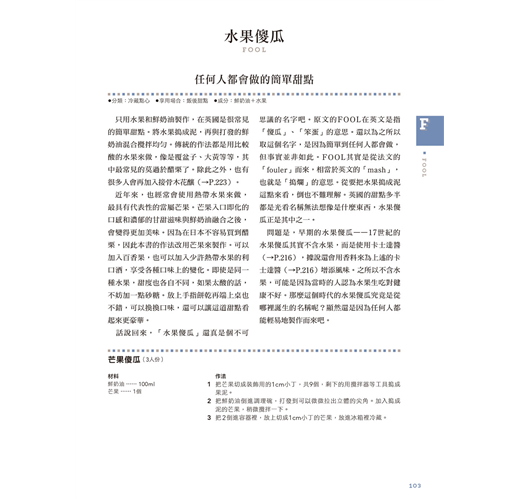 內容中也會提到甜點在為翻糖裝飾藝術、美食活動以及布丁寫下定義的英國所發生過的各種奇聞逸事,還有與其他國家,例如法國或美國的甜點間的關聯性,藉由本書的「圖鑑」式介紹,可以更加認識英式甜點的魅力所在。